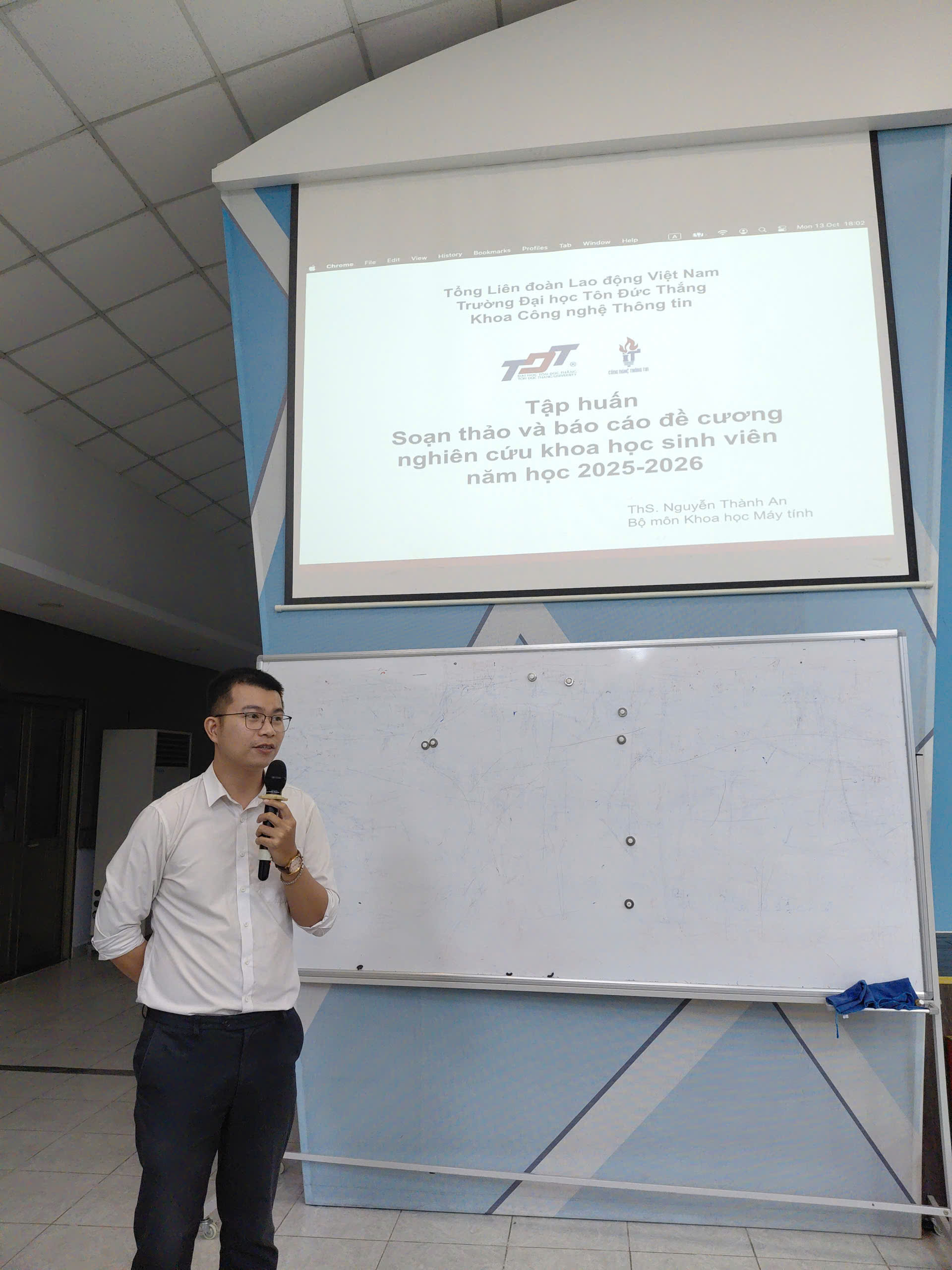 Tối ngày thứ Hai 13/10/2025, buổi Tập huấn Soạn thảo và Báo cáo đề cương nghiên cứu khoa học sinh viên năm học 2025–2026 đã diễn ra sôi nổi với sự tham gia của hơn 120 sinh viên đến từ nhiều khóa và chuyên ngành khác nhau.